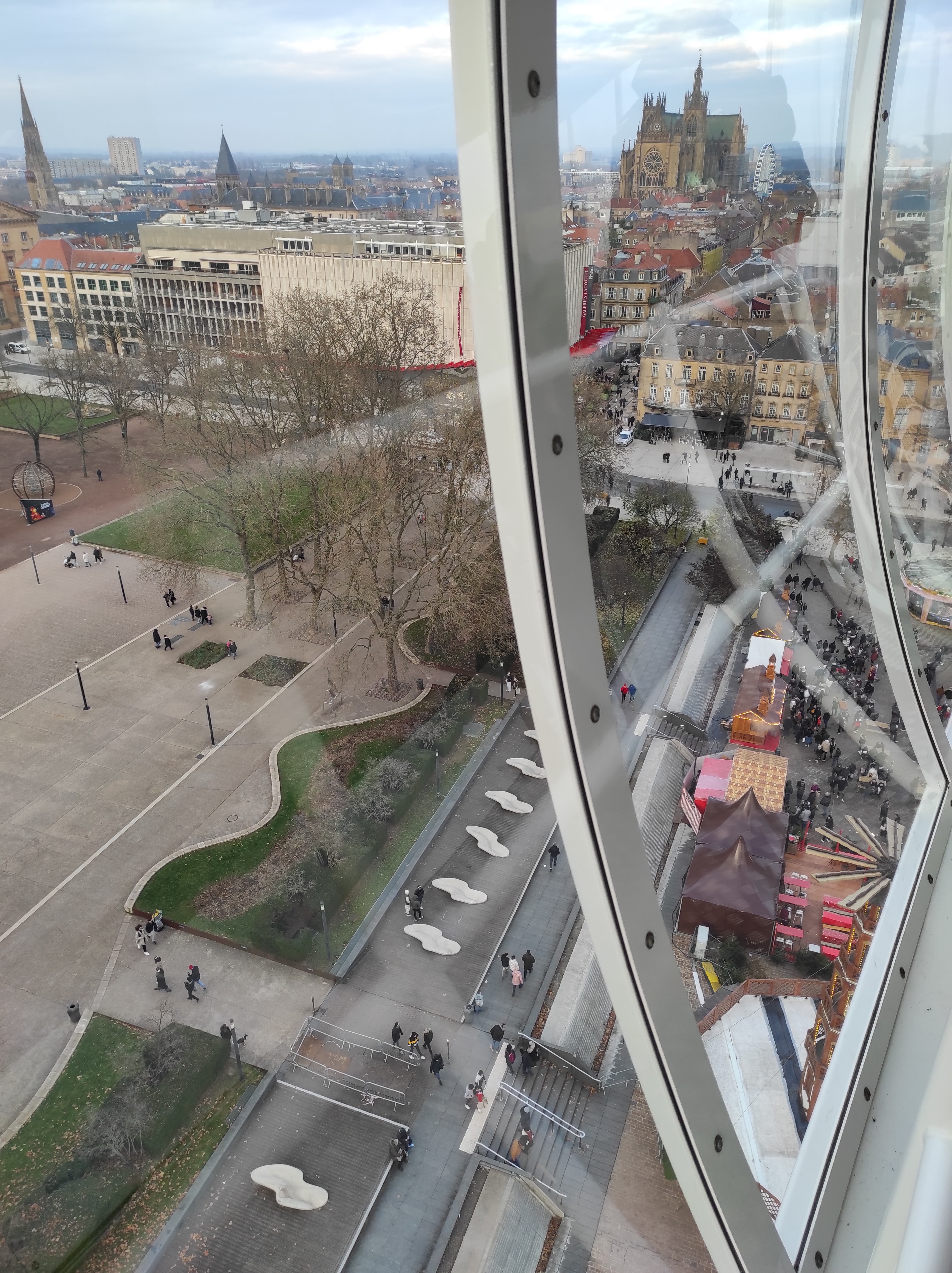 Beau marché de Noël avec en plus le city skyliner qui permet de découvrir Metz à 72m de haut, vue rotative, tb.