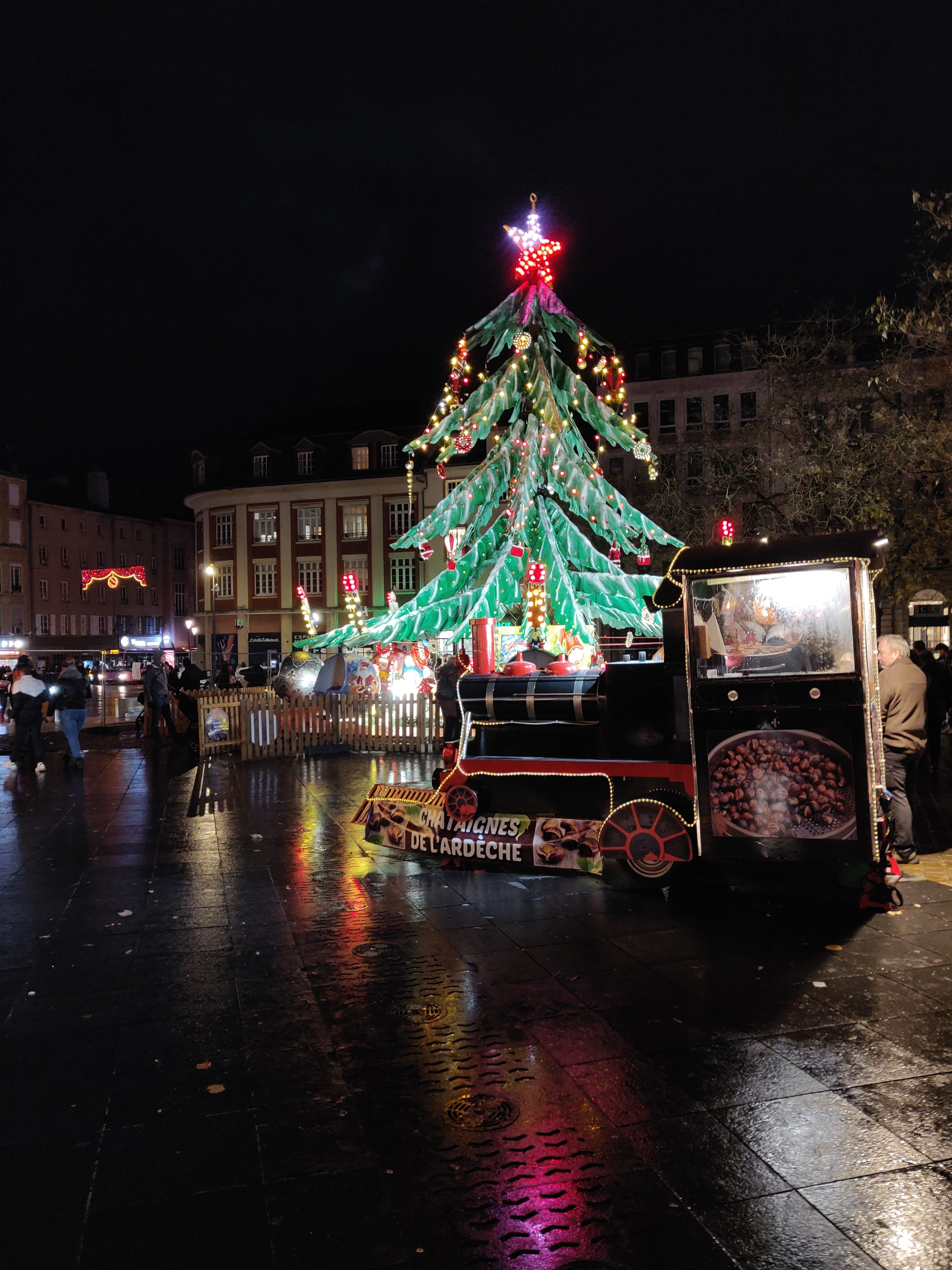 Tres beau marché de Noël avec patinoire sur la place de la République .stand de saumon au feu de bois tres bon