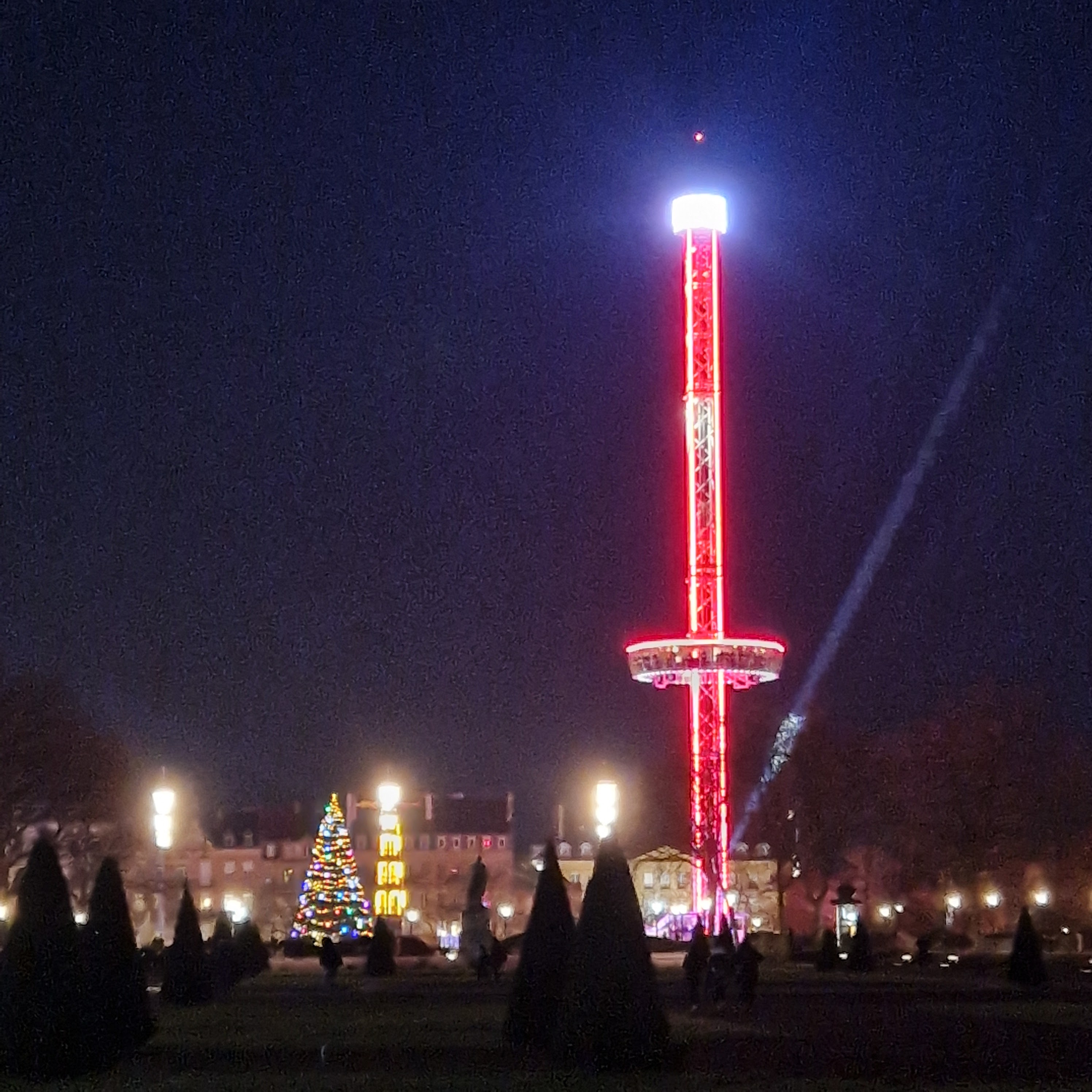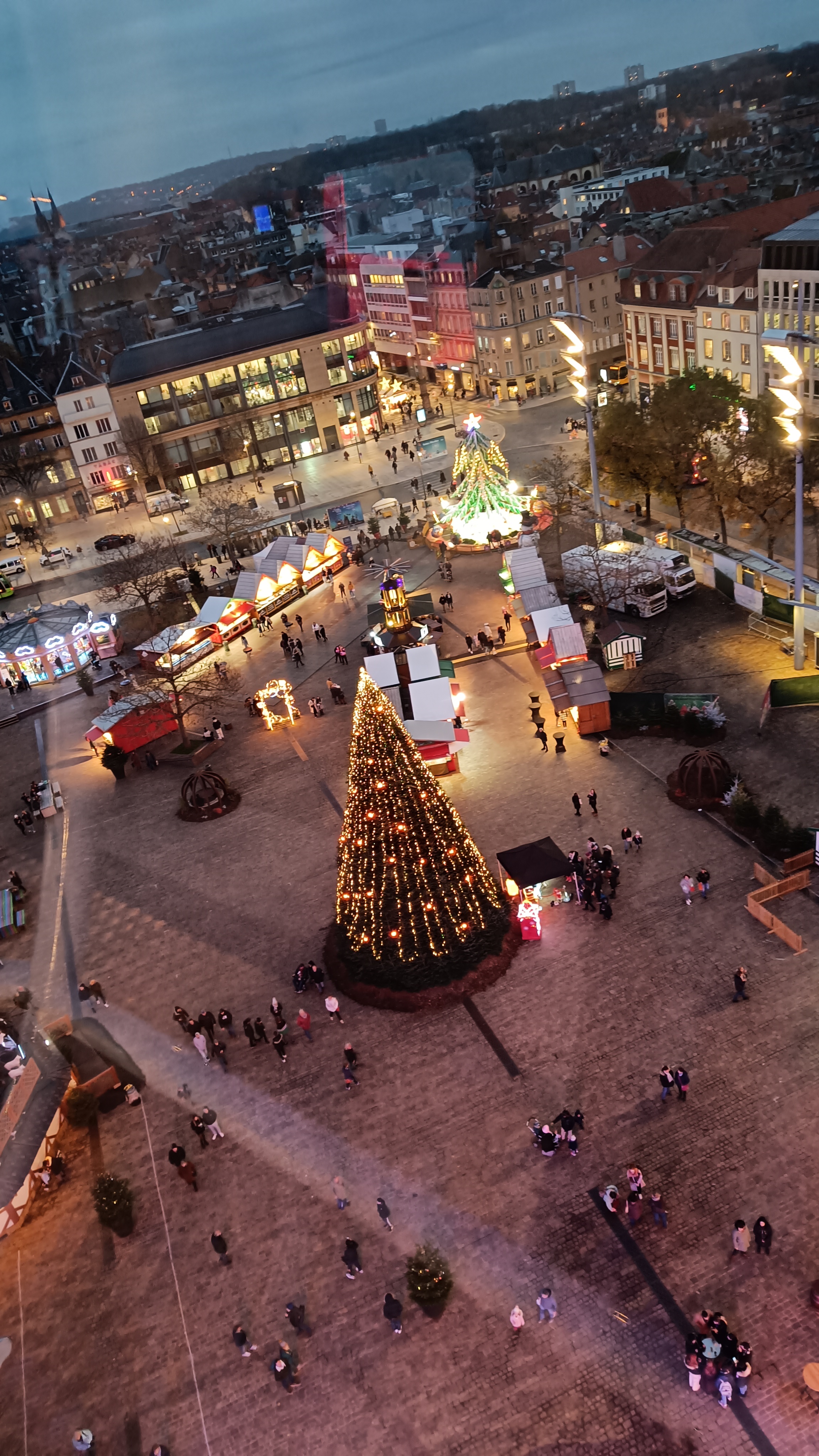Superbe place. Nous avons la chance de la voir à 70 mètres d'altitude grâce à ce magnifique manège. La magie de Noël 😉 Cette place avec toutes ses illuminations, sont chemin des lumières. C'est vraiment à faire malgré 1h d'attente, ça vaut vraiment le coup.