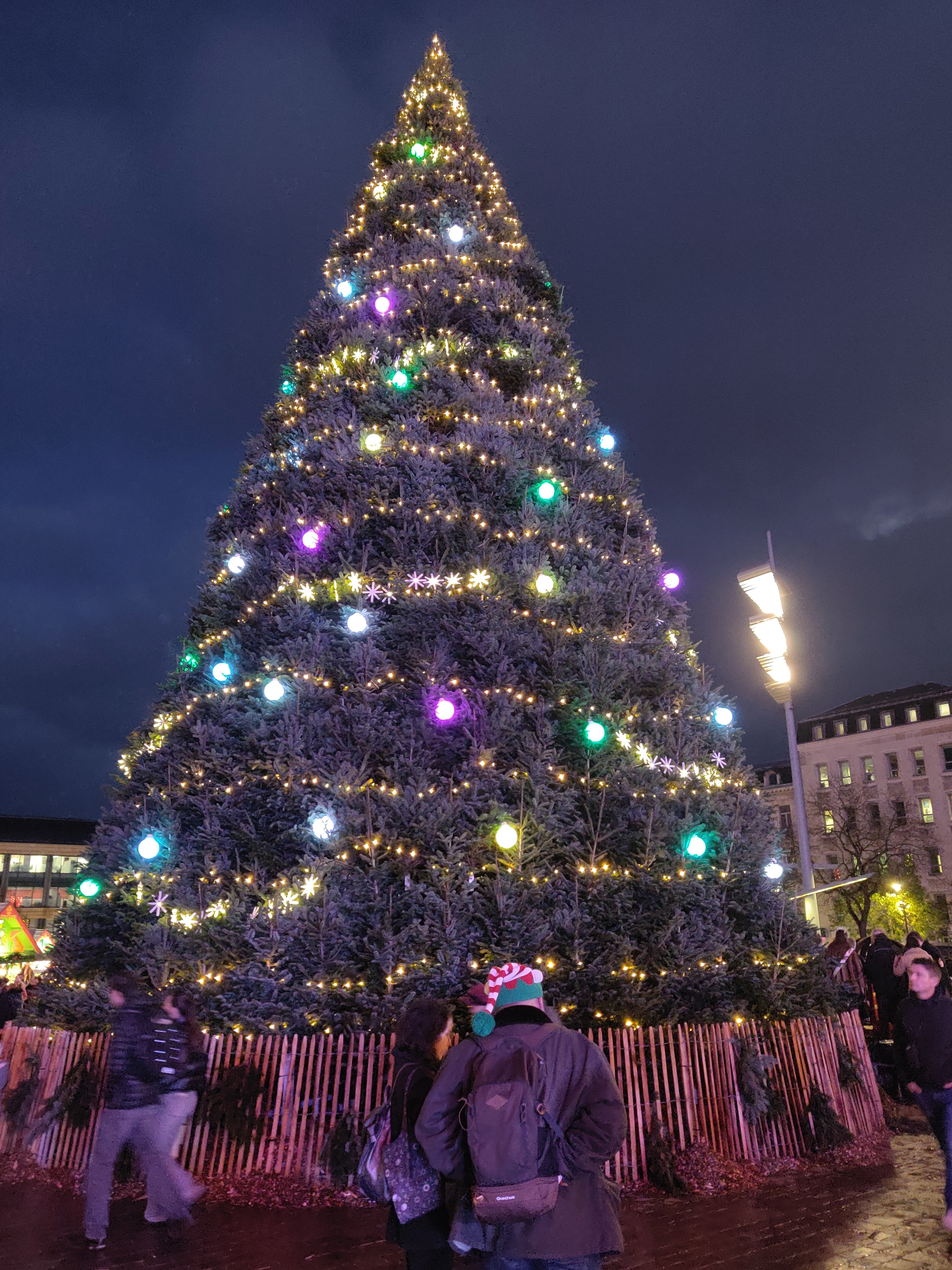 Petit marché de Noël ou tout est cher et pas forcément authentique. Bref une pompe à fric. Le sapin géant fait d'un empilage de plus petit en vaut la visite.