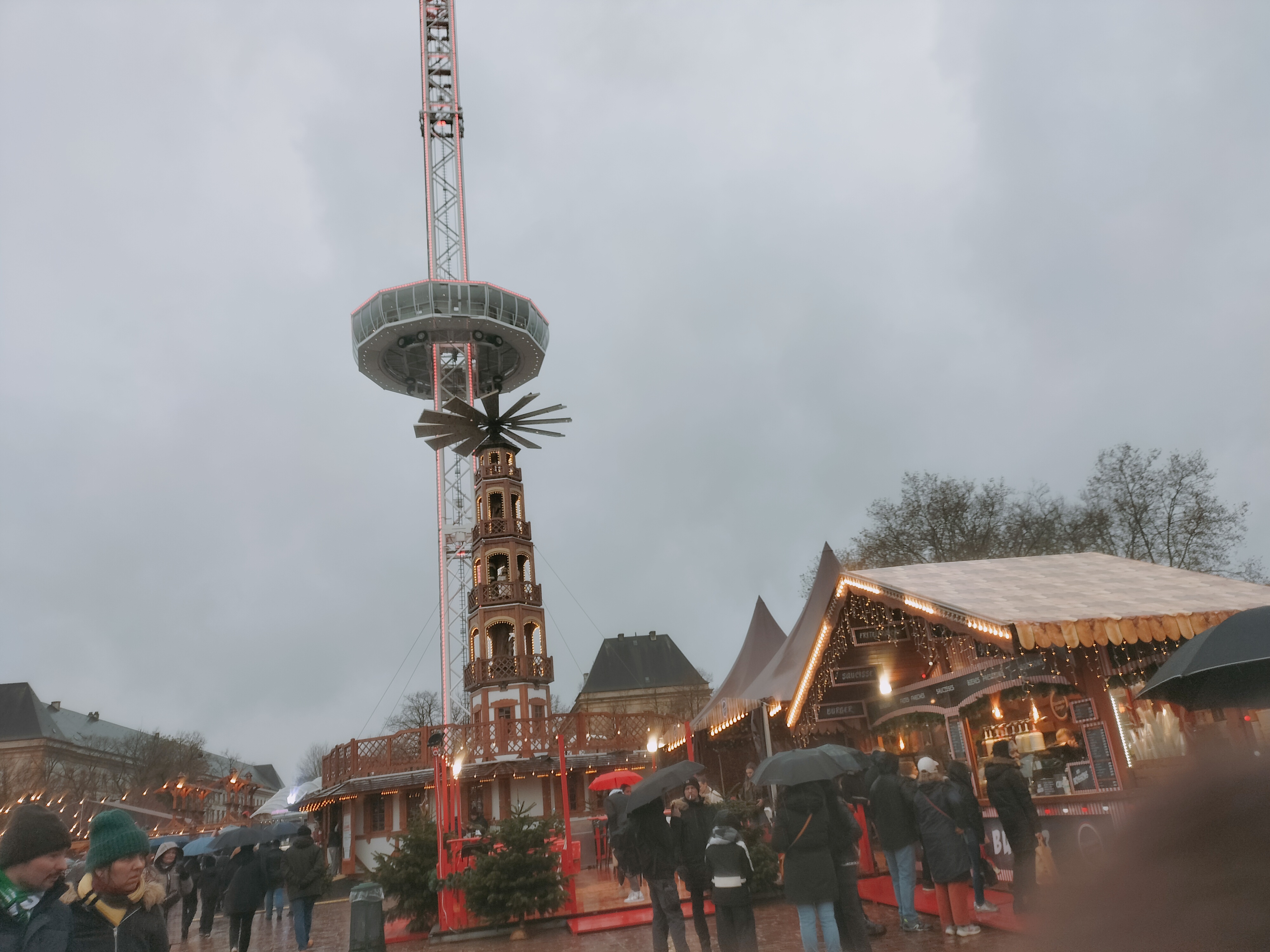 Marché de Noël un peu dispersé et certains tarifs des exposants exagérés. Attraction sympa avec la tour panoramique.