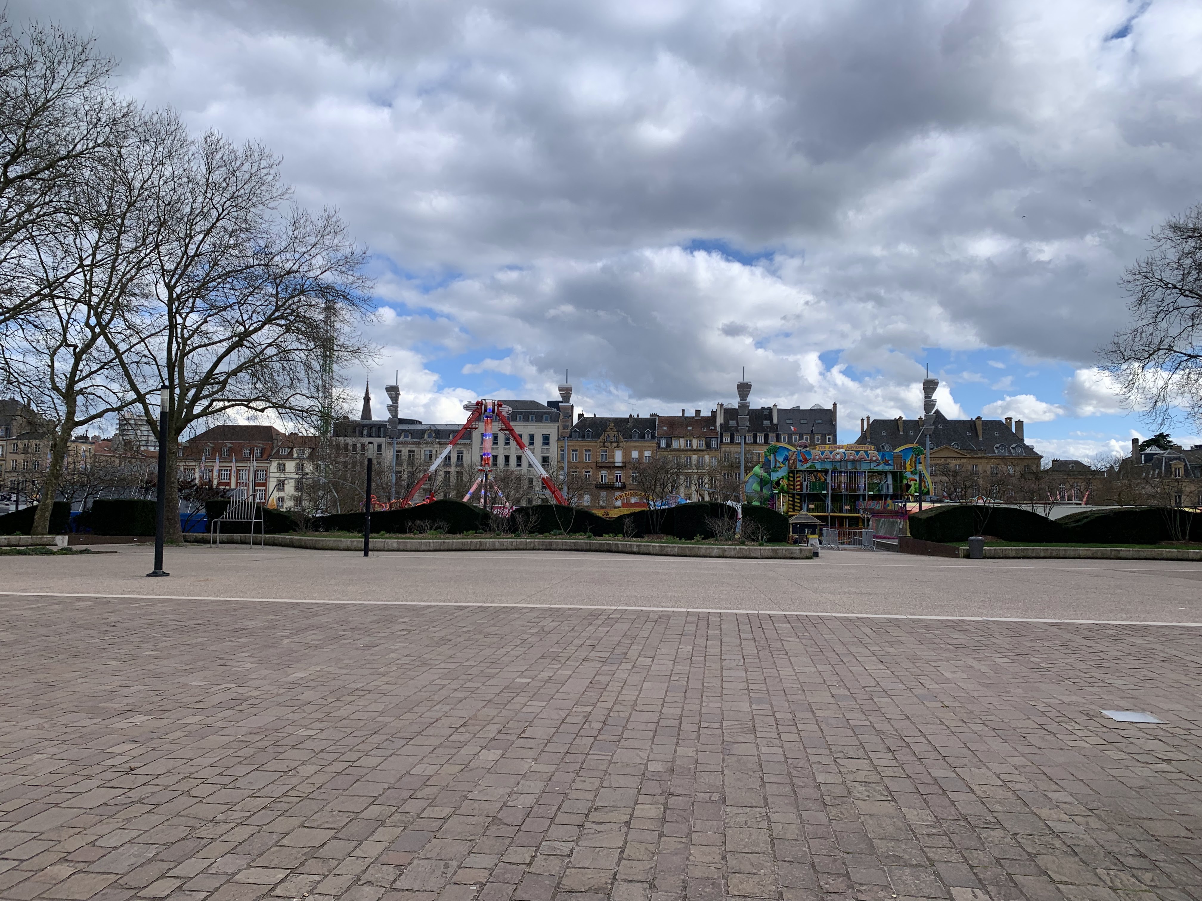 Belle place. Je ne fais pas partie des nostalgiques du parking aérien. Je trouve qu'elle est bien plus belle maintenant. Il y a régulièrement des attractions. En ce moment, c'est le marché de Noël et ses chalets. Ça reste un instant magique. Il y a le grand parking souterrain à proximité et le centre de Metz à deux pas. Il y a toujours de quoi faire.